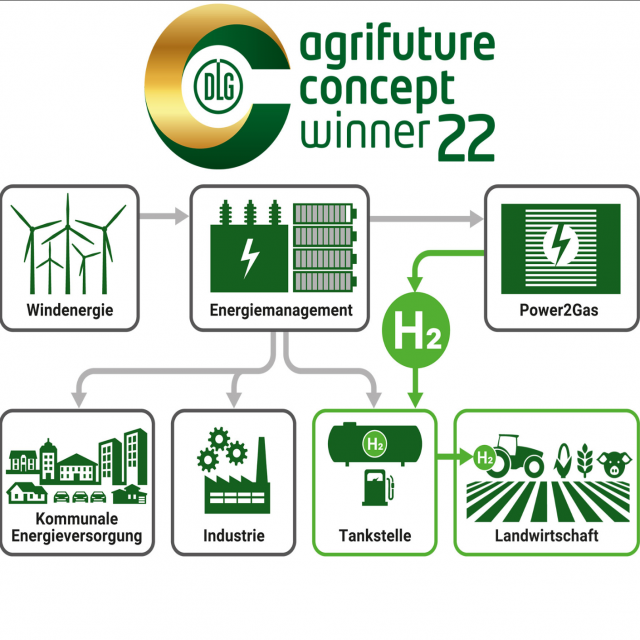 Ein solches innovatives Klimaschutzkonzept wird im Rahmen des Verbundvorhabens H2Agrar umgesetzt, in dem ein Fokus auf der Reduzierung der Treibhausgasemissionen aus dem Kraftstoffeinsatz landwirtschaftlicher Maschinen und Transportfahrzeuge liegt.
